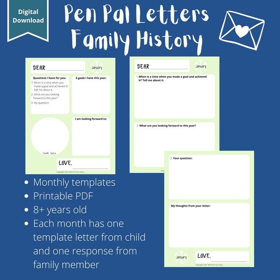 Pen Pal Kit Family History Monthly Letters With Grandparents Aunts Uncles Parents Etsy